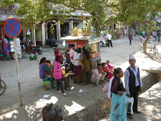 We then drove up to the World Peace Stupa overlooking Pokhara. The road was gravelly and steep and we didn't get to the very top - that entailed another labor-intensive climb on foot. We took in the view and left, but on the way down he kept turning off the engine to save gas and he drove too fast for this weak-hearted traveller. I'm not very brave when it comes to mountain roads, unless I'm driving.